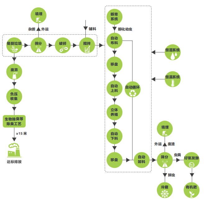 智能收运 + 预处理 + 昆虫处理技术 + 有机产品加工 + 臭气处理